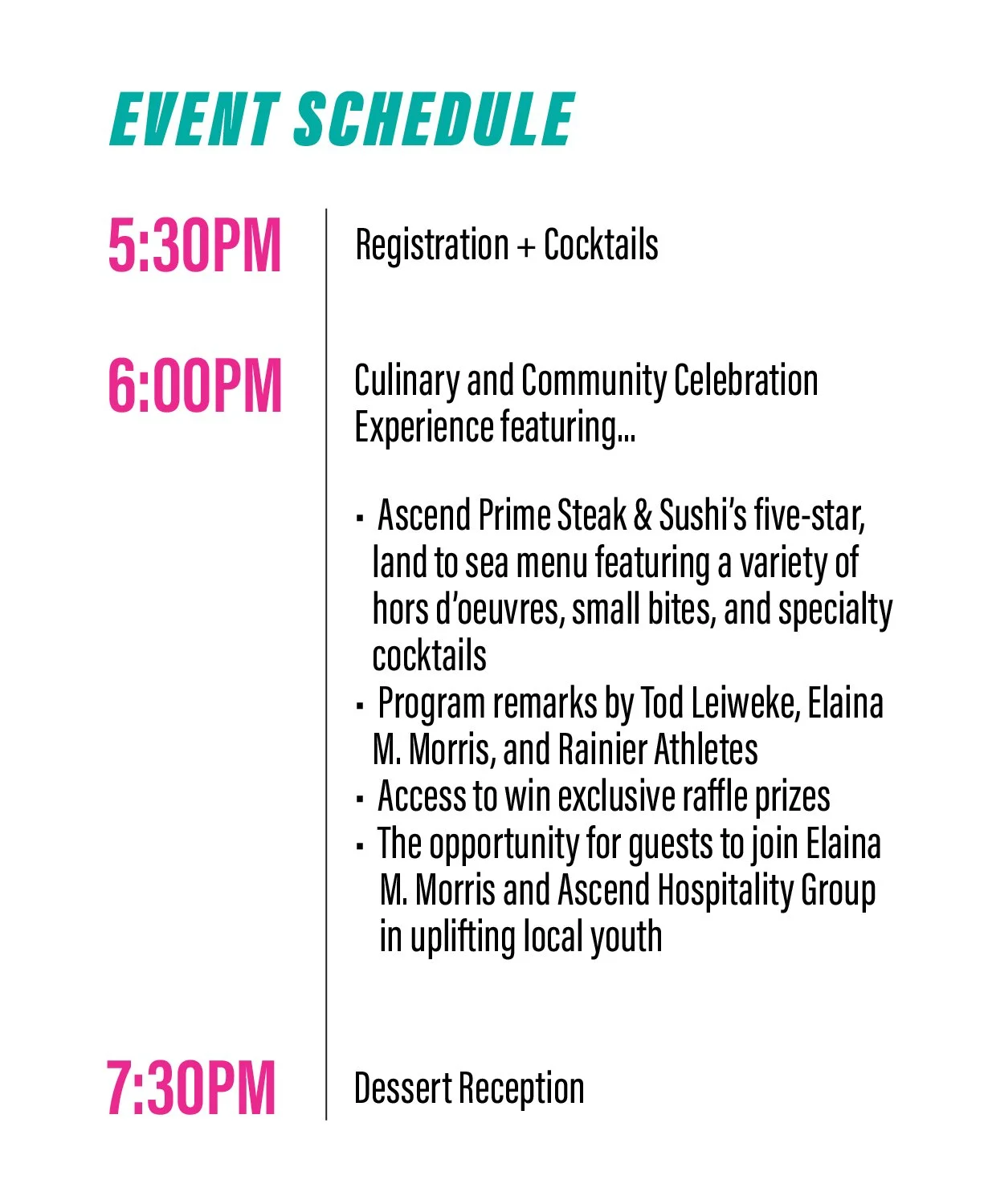 During this cocktail style gathering, supporters will be treated to an exclusive menu, carefully curated by the master chef's behind Ascend's five star menu. All in attendance will have the opportunity to help RA honor of this year’s community PlayMaker, a local leader whose influence has paved the way to increased opportunity and connection for youth and their families. To champion the importance of mentorship and present this year’s community PlayMaker award, we will hear from Seattle Kraken CEO and Co-Owner, Tod Leiweke!